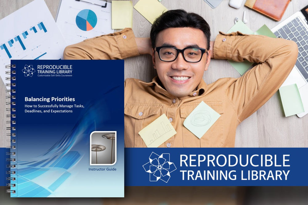 You need to invest in your growth process. Imagine resources designed to help you manage workplace changes, reduce stress, and aid in your career growth. That's what HRDQ's Balancing Priorities Customizable Courseware is designed to do. It could be just what you need! It has flexible downloadable content customized for different learning formats – from virtual to classroom – and includes a useful toolkit to boost productivity at any level within your organization. Our program builds confidence and equips you with the tools to manage your workload effectively, keeping productivity battles away.